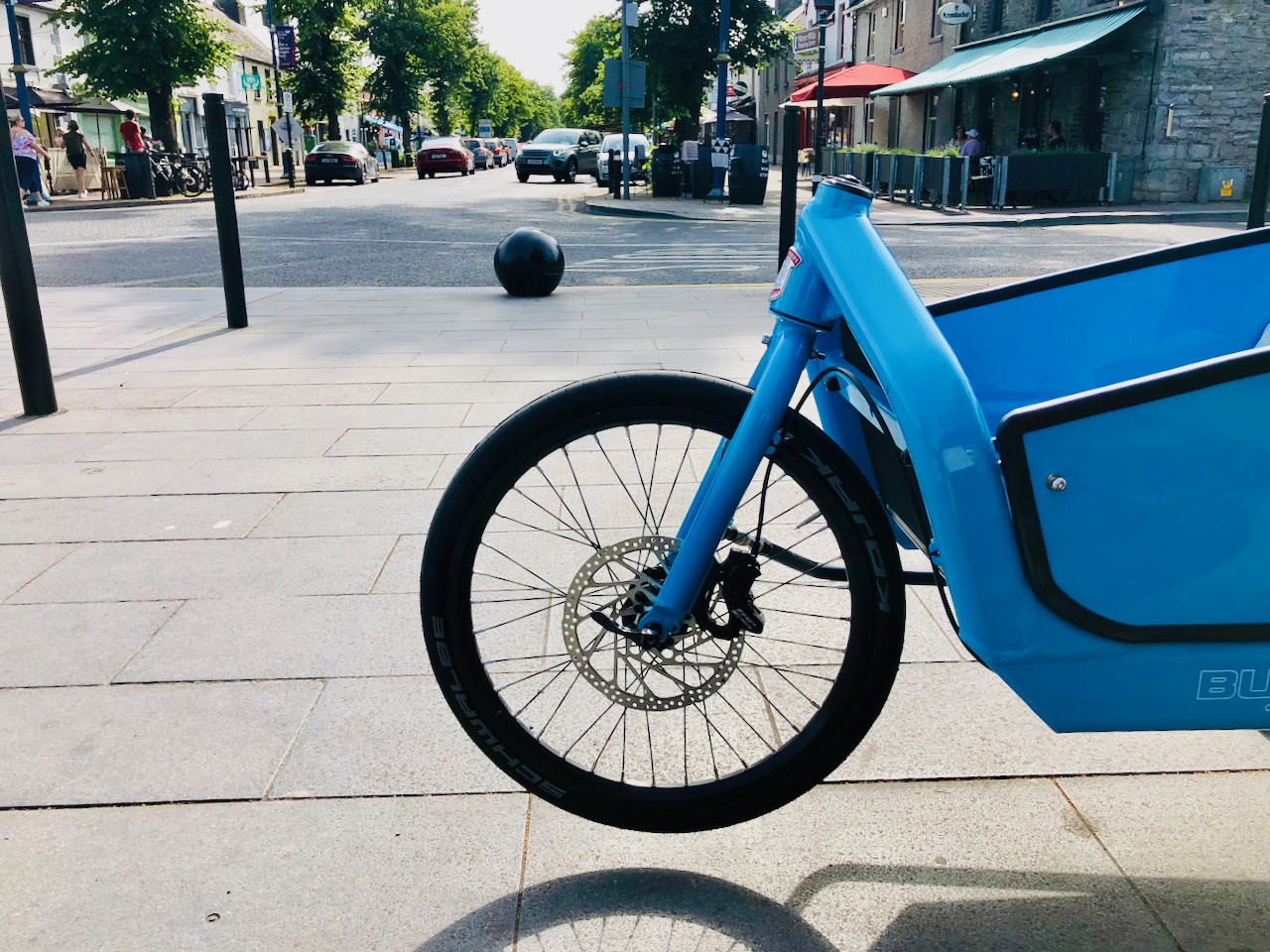 Cargo Bike Front Wheel and Maynooth Main St Published March 24, 2023 at 1280 × 960 in The Cargo Bike Life in Maynooth: Why You Need One Today 53.382306 -6.588583