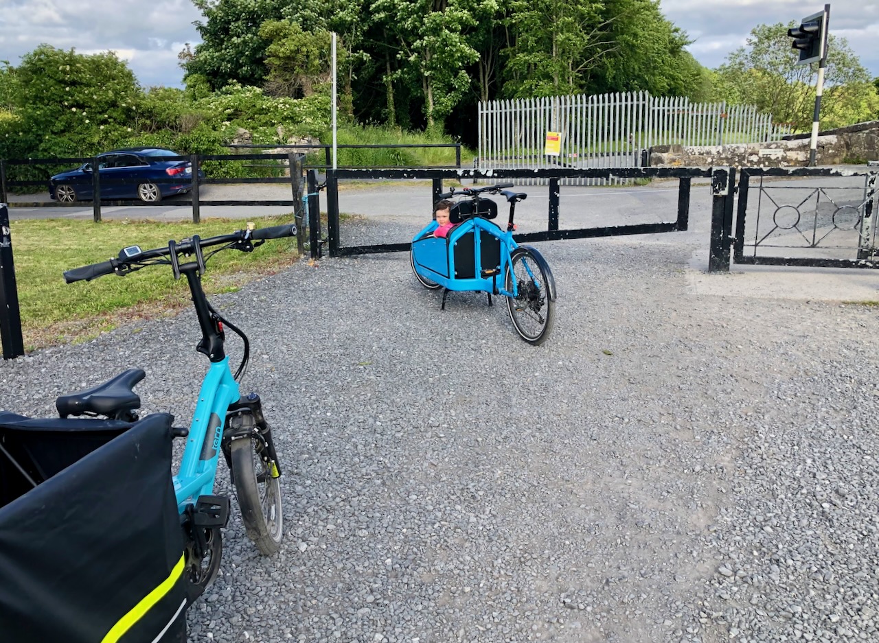 Lock 13, Cargo Bikes and Kissing Gates Published March 24, 2023 at 1280 × 937 in The Cargo Bike Life in Maynooth: Why You Need One Today A pair of cargo bikes obstructed by a kissing gate at Deey Bridge (Lock 13) on the Royal Canal 53.374122 -6.529147