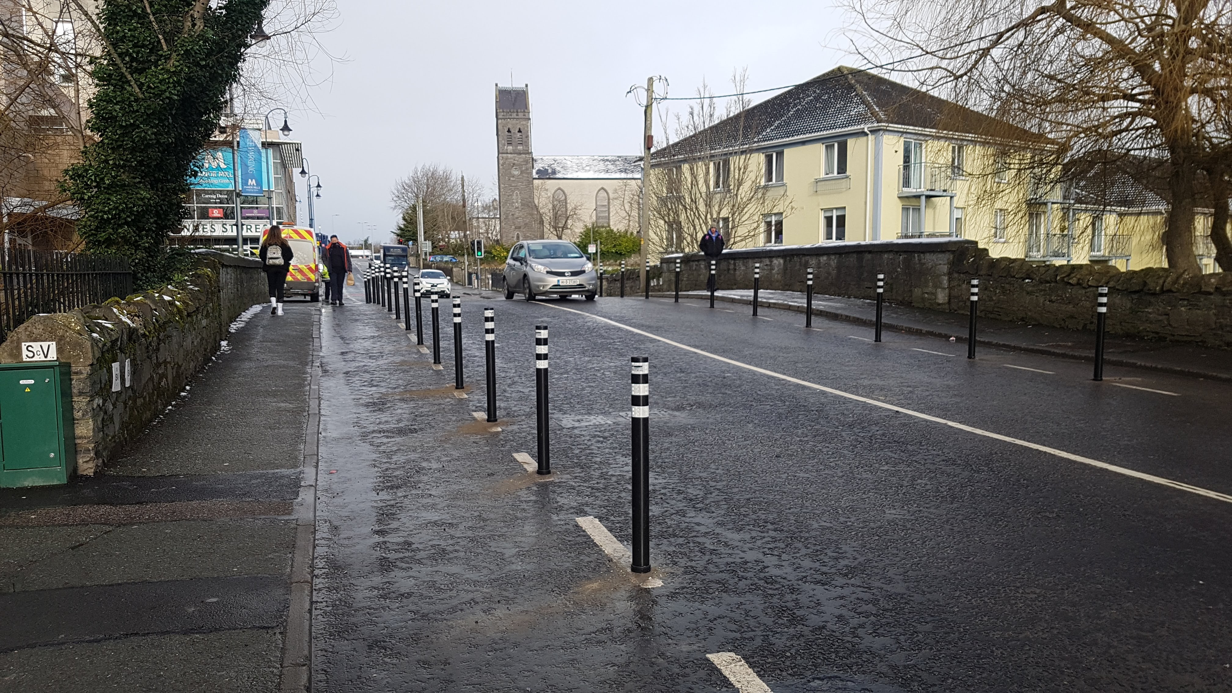 Although the Dublin Road work s limited, Maynooth Cycling Campaign welcomes the pop-up cycle lane which has appeared on part of one side of the road. While it will not attract many more cyclists, it will give more space to pedestrians and reduce the risk of a collision between cyclists and motorised vehicles – at least when they are travelling towards Carton Park Shopping Centre.