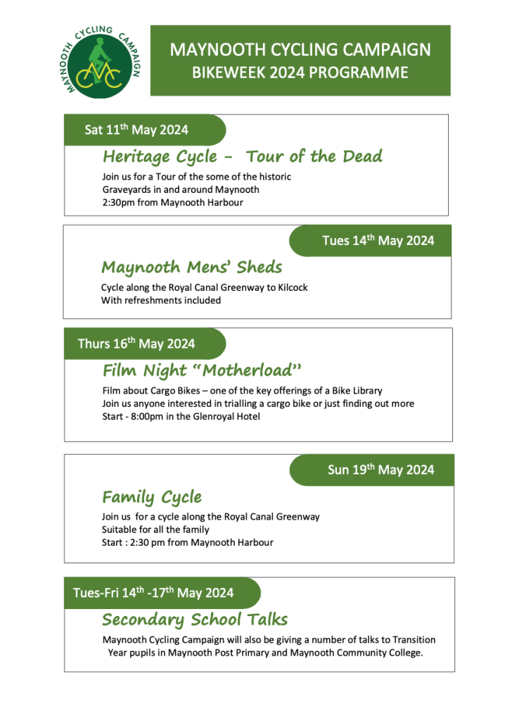 Maynooth Cycling Campaign is a non-party independent local lobby group advocating for better cycling infrastructure in Kildare.